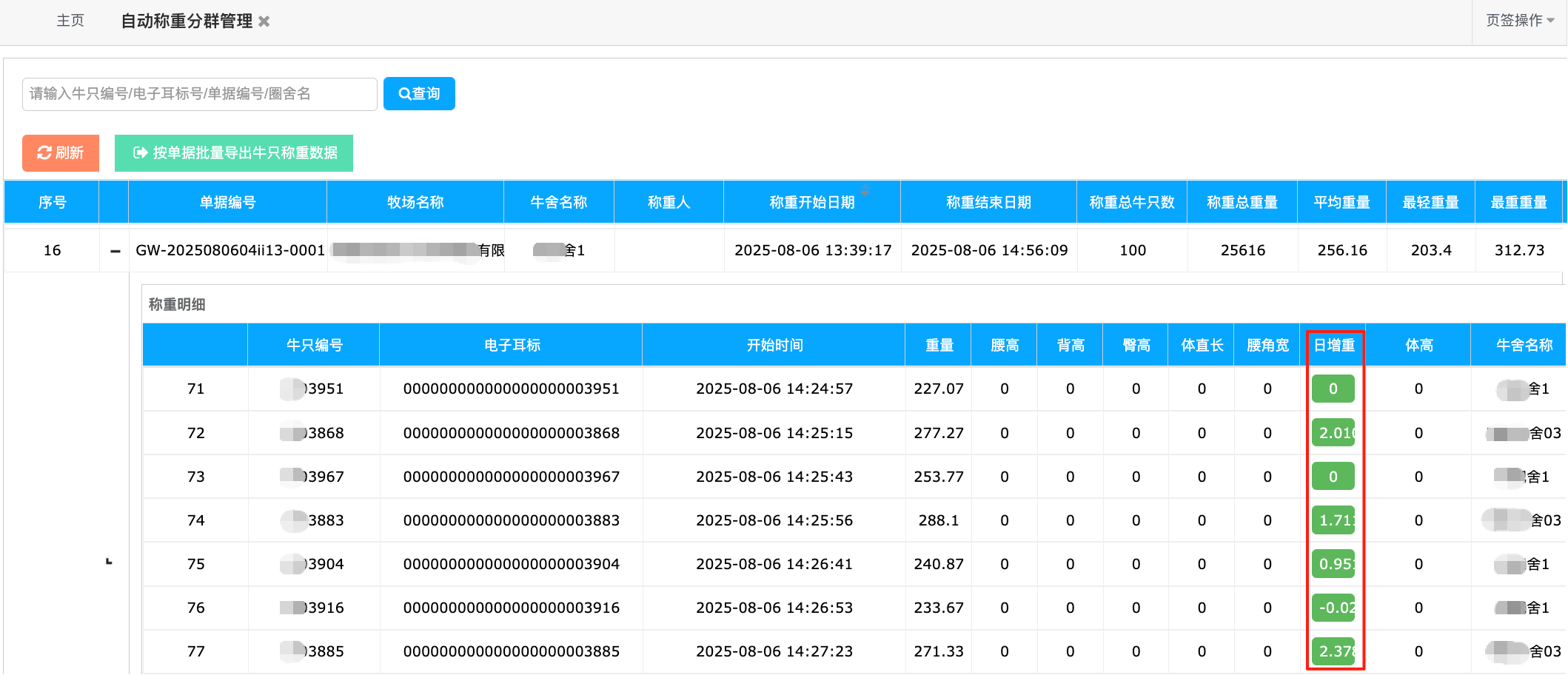 ✅日增重分群:依托历史数据,自动筛选日增重不达标牛只,单独护理、调整饲料;