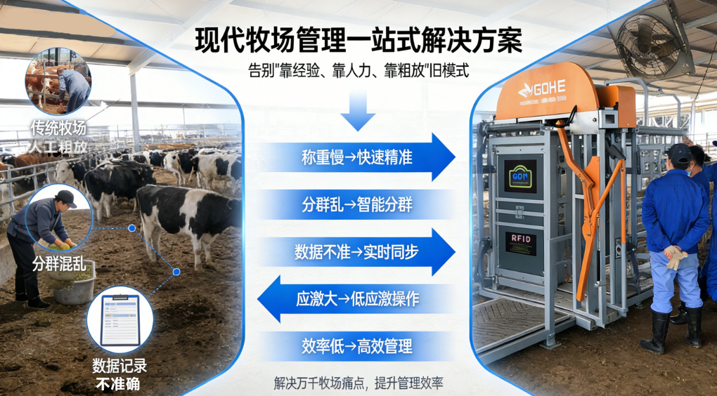 在规模化养殖飞速发展的今天,牧场管理早已告别“靠经验、靠人力、靠粗放” 的旧模式。称重慢、分群乱、数据不准、应激大、效率低—— 这些困扰万千牧场的痛点,如今有了一站式解决方案!